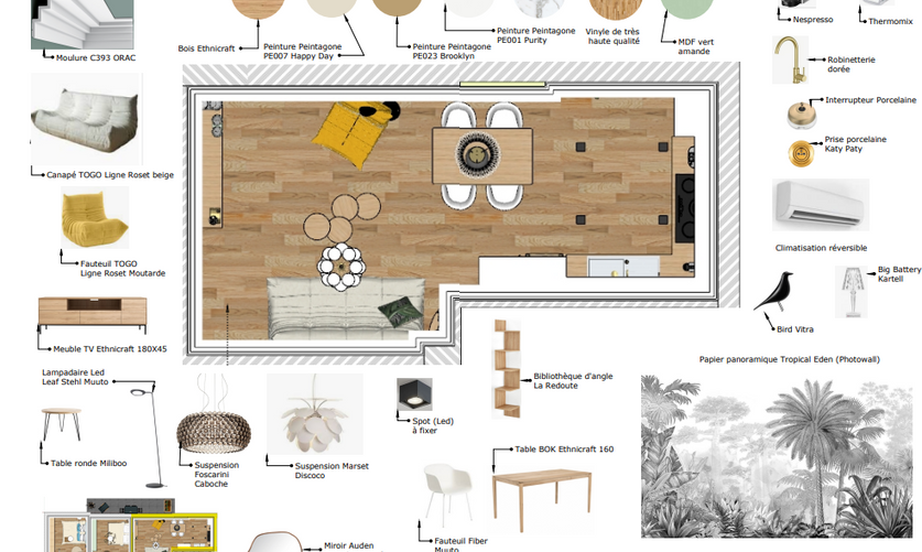 Ce bel appartement de Style Haussmannien manquait de cachet. Le couloir était également très sombre. L'idée a été de créer des fenêtres en bandeau dans les chambres qui bénéficiaient d'une hauteur sous plafond de 3 mètres. Création d'un grand séjour car la cuisine était auparavant séparée. Installation d'une verrière. Plusieurs papiers panoramiques ont également été installés. Les différents dressings ont été réalisés sur mesure. Principales marques utilisées : Ligne Roset, Foscarini, Kartell, Market Set, Muuto, MDF Italia, Ethnicraft. Peinture : marque Peintagone.